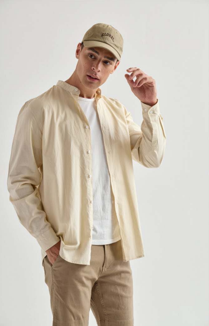 Camisa Lino M/ Larga . con cuello mao en Lino y Algodón . COMPOSICIÓN : 75% Algodón , 25% Lino, 120gsm